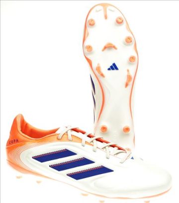 Adidas Copa Pure League in beige/blauw/oranje met vaste nop. Geschikt voor alle velden.