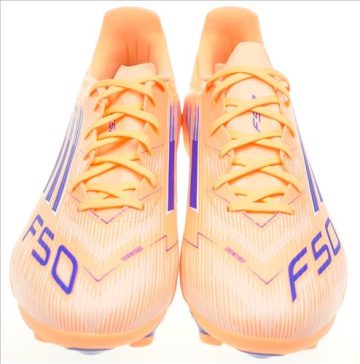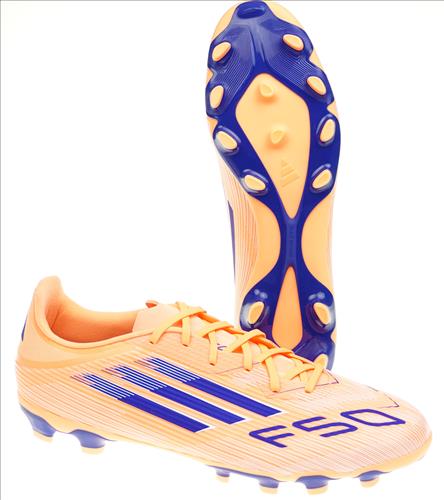 Adidas F 50 MG voetbalschoen in oranje/blauw combinatie. Deze multi ground schoenen zijn geschikt voor alle velden.
