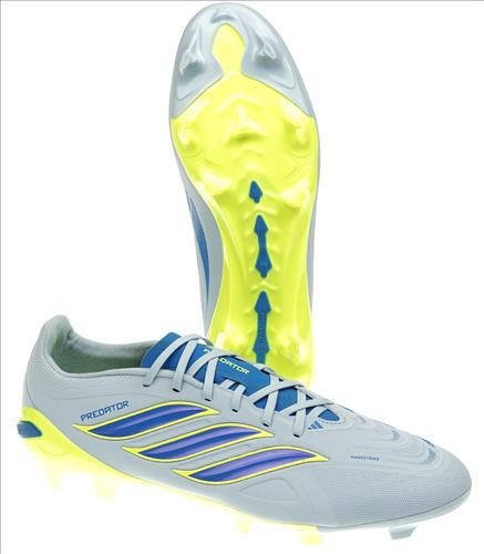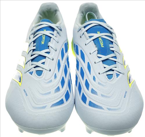 Adidas Predator Leaque FG voetbalschoen in grijs/geel/blauw combinatie met vaste nop. Geschikt voor alle velden.