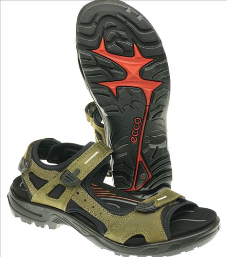 Ecco Off Road sandaal in groen nubuck met verstelbare sluiting.