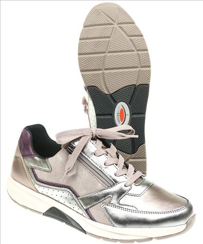 Gabor Rolling Soft sneaker in zilver/paars metallic combinatie.