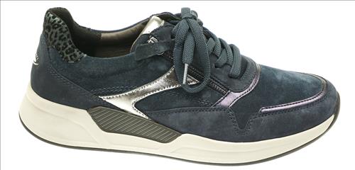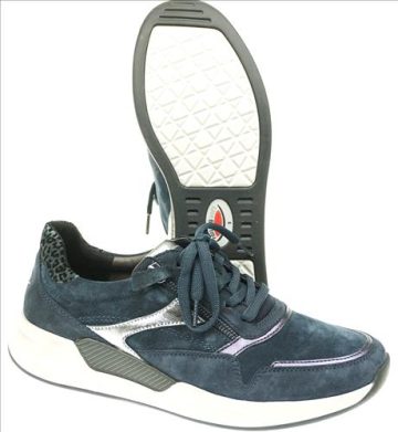 Gabor Rolling Soft sneaker in blauw suede combinatie.