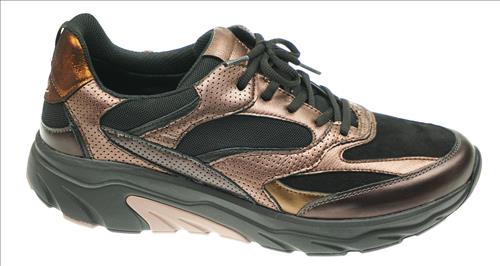 Gabor Rolling Soft sneaker in zwart/donkerkoper combinatie.