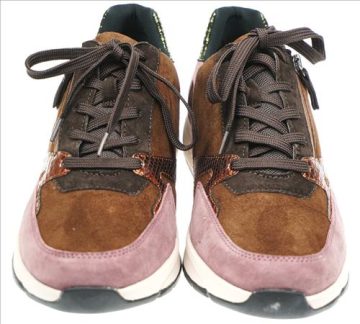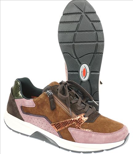 Gabor Rolling Soft sneaker in bruin/oud roze combinatie.