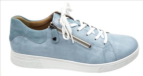 Hartjes Sophie sneaker in denimblauw leer. Deze schoenen zijn op voorraad vanaf maat 38.