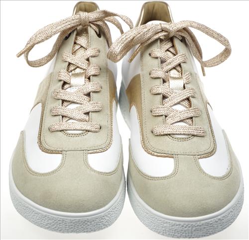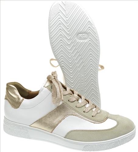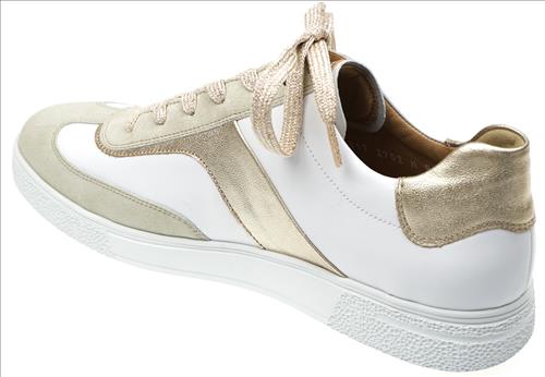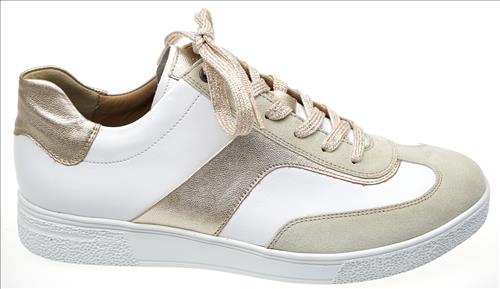 Hartjes Sophie sneaker in wit/taupe/brons combinatie. Deze schoenen zijn op voorraad vanaf maat 38.