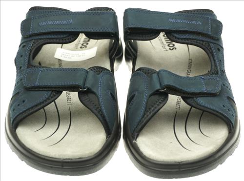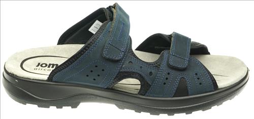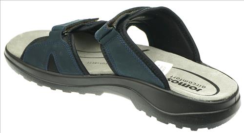 Jomos slipper in blauw nubuck met klittebandsluiting.