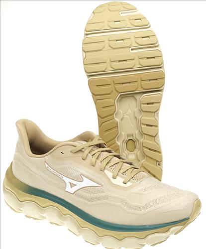Mizuno Wave Horizon hardloopschoen in beige nylon.