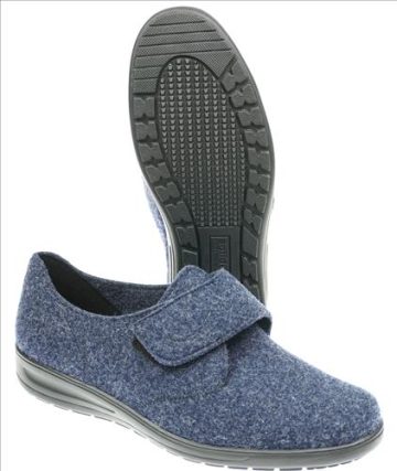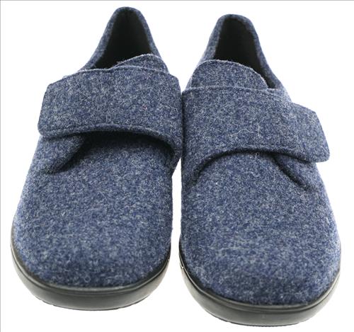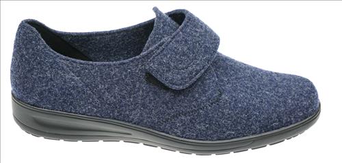 Solidus pantoffel in blauw vilt met klittenbandsluiting.