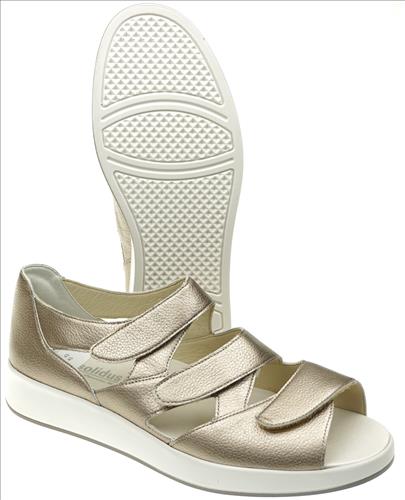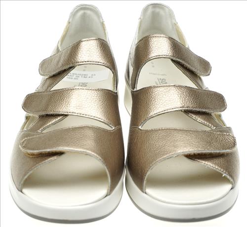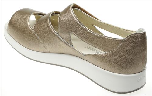 Solidus sandaal met dichte hiel en verstelbare sluiting in brons leer. Deze sandalen zijn op voorraad vanaf maat 38.