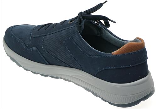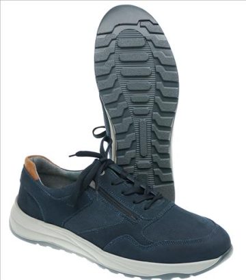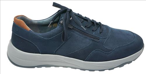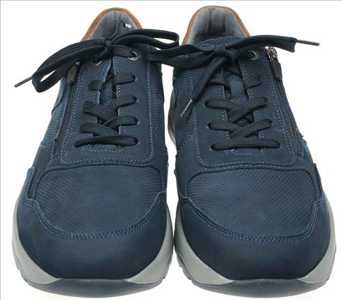 Waldlaufer veterschoen in donkerblauw/cognac nubuck combinatie. Deze schoenen zijn op voorraad vanaf maat 41. Extra breed.