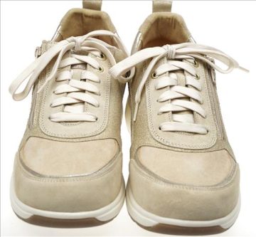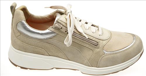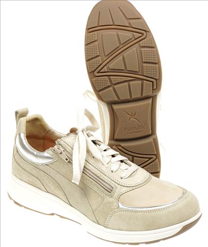 Xsensible/Stretchwalker Valletta in beige/zilver combinatie. Deze schoenen zijn op voorraad vanaf maat 37.